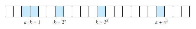 a[k + 3] due to the condition that a null was encountered at a[k + 1]k + 1, then k + 4, then k + 9| Item | Hash Code | Array Index |