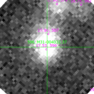 Resolved from LGGS J004032.39+403903.0 of comparable brightness is 3.2 arcseconds N. Also three unresolved LGGS stars >3 magnitudes faither within 3 arcseconds.